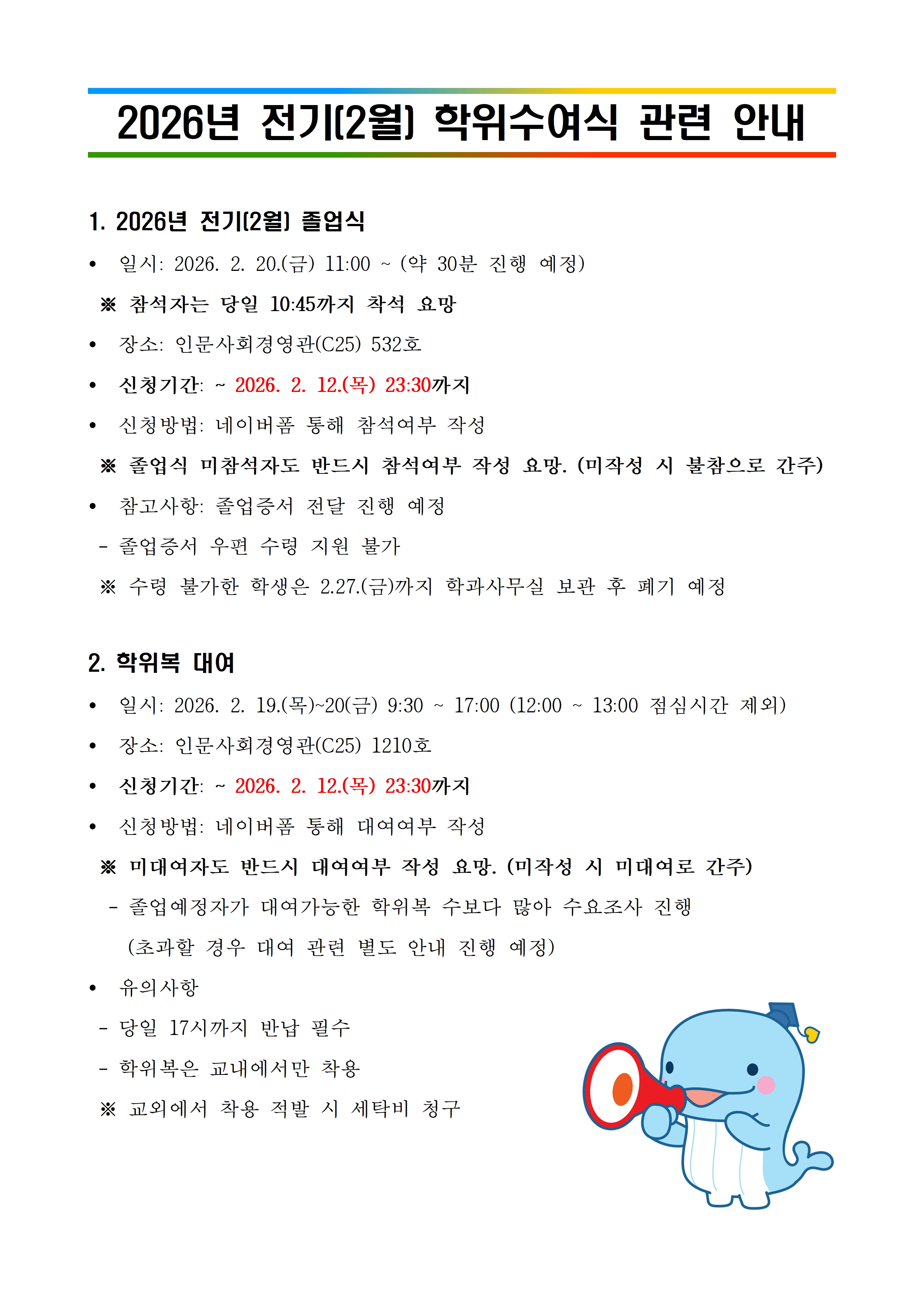 2026년 전기(2월) 학위수여식 관련 안내