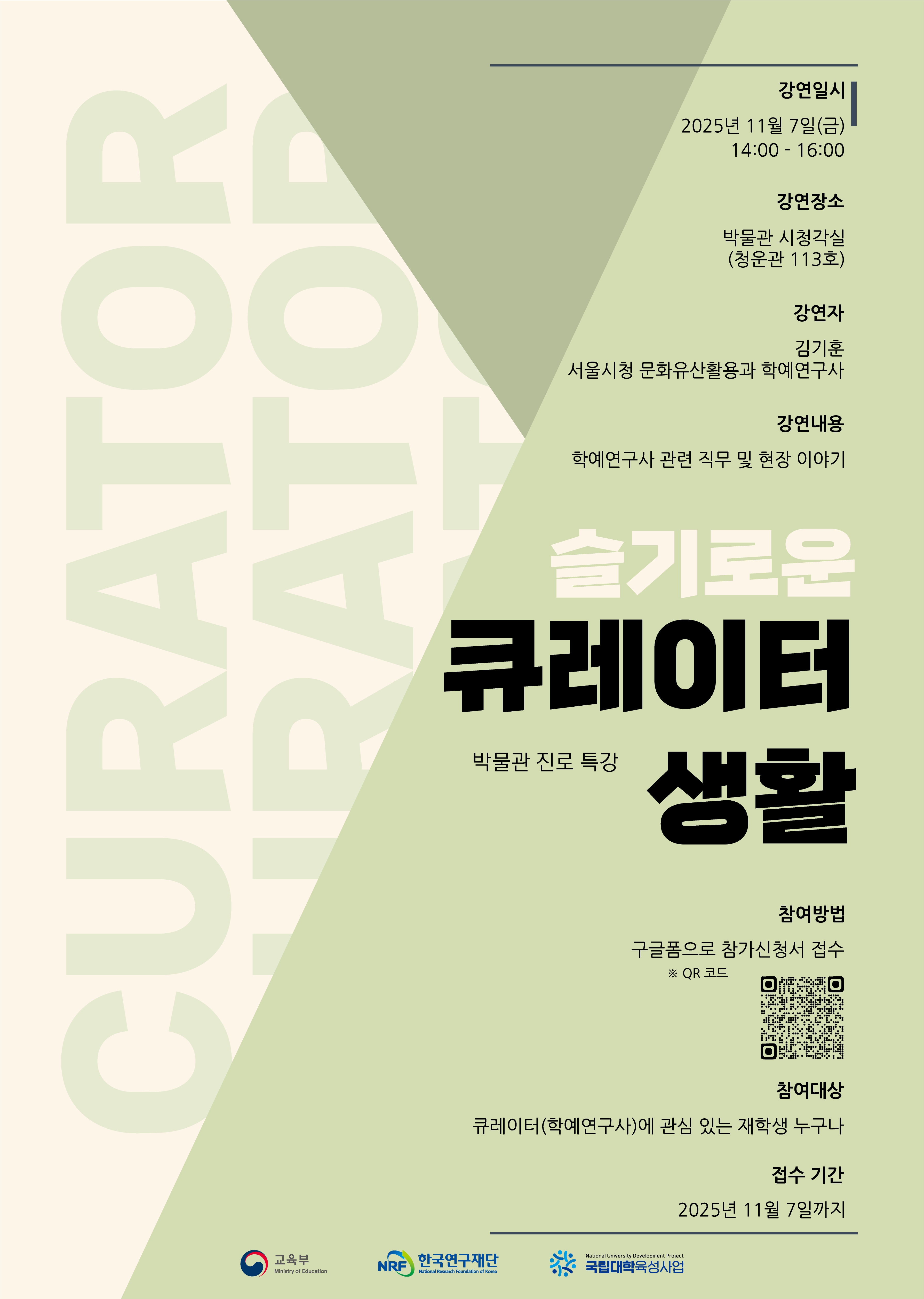 국립부경대학교 박물관 진로 특강 '슬기로운 큐레이터 생활' 안내
